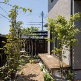 クローズされたプライベートガーデンには腰掛ベンチを採用し季節を存分に感じられる空間を演出させて頂きました。