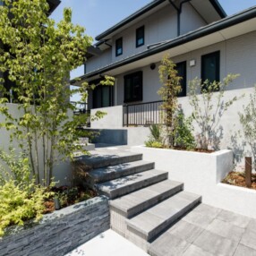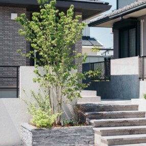 高低差をいかした緑のアプローチ | 施工事例:外構 / 京都府相楽郡精華町